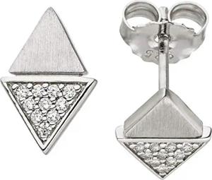 Ohrstecker Ohrringe Dreiecke mit weißen Zirkonia, 925 Silber rhodiniert teilmatt