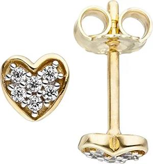 Ohrstecker Ohrringe Herz Herzchen Zirkonia weiß 375 Gold Gelbgold Ohrschmuck