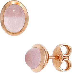 Ohrstecker Ohrschmuck Rosenquarz rosé oval gewölbt 585 Gold Rotgold Damen