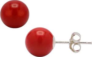 Ohrstecker Stecker aus Bambus-Koralle Kugel 8mm & 925 Silber Ohrschmuck rot
