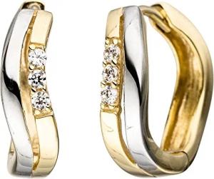 Paar Ohrringe Creolen gewellt mit Zirkonia weiß 333 Gold Gelbgold rhodiniert
