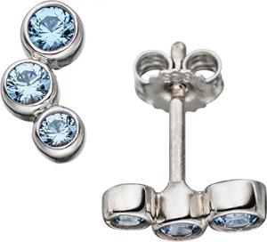 Paar Ohrstecker Stecker Ohrschmuck drei runde blaue Spinelle 925 Silber Damen