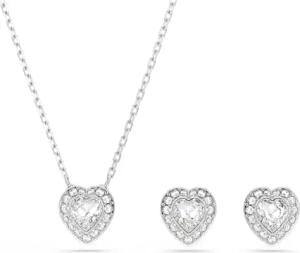 Ariana Grande x Set, Rhodinierter Herz-Anhänger und Ohrstecker mit Kristallherzen in Klarem Pavé und Verschiedenen Schliffen, Länge Kette: 38-45 cm, Größe Ohrringe: 1 x 1 cm