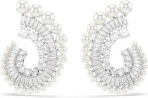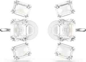 Matrix Ohrclips, Weiße, Rhodinierte Ohrringe mit Strahlenden Swarovski Kristallen in Verschiedenen Schliffen