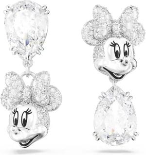 Disney Minnie Mouse Drop-Ohrhänger, Weiße und Rhodinierte Damenohrringe mit Strahlenden Swarovski Kristallen