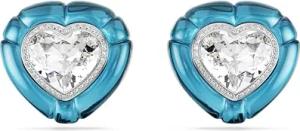 Dulcis Ohrclips, Rhodinierte Clip-Ohrringe mit Je Einem Blauen Herz und Einem Klaren Kristallelement im Herzschliff, Eingerahmt von Klarem Pavé, Größe: 2.6 x 2.8 cm
