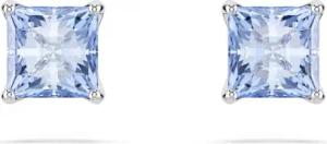 Matrix Ohrstecker, Blaue, Rhodinierte Ohrringe mit Strahlenden Swarovski Kristallen im Kissenschliff