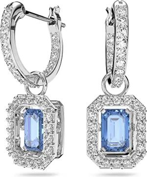 Una Drop-Ohrhänger, Blaue und Rhodinierte Ohrringe mit Strahlenden Swarovski Kristallen