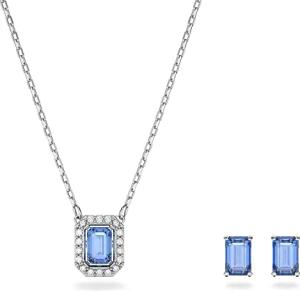 Una Set, Blaue und Rhodinierte Halskette und Ohrringe mit Strahlenden Swarovski Kristallen