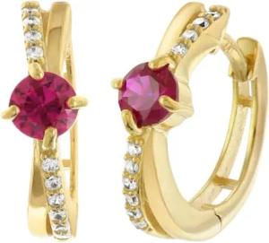 28064 Damen-Creolen Silber Vergoldet Ohrringe mit Zirkonia Rot/Weiß