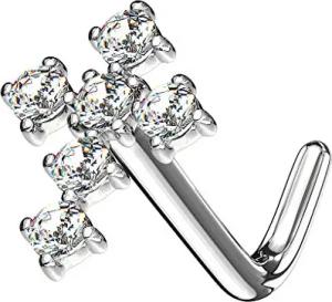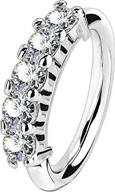 Piercing Ring mit 5 Glitzer Kristall Septum Nasen Lippen Helix Ohr Nasenpiercing Ohrpiercing Tragus Nasenring Klemmring Silber 1,0mm x 8mm