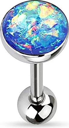 Barbell Stab Piercing Hantel Stecker Zungenpiercing Zunge Intim Brust Oral Ohr Tragus Helix Ohrpiercing Kugel mit Multi Opal Kristall Glitter Blau