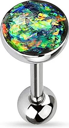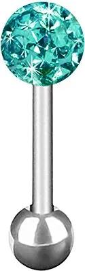 Barbell Stab Piercing Hantel Stecker Zungenpiercing Zunge Intim Brust Oral Ohr Tragus Helix Ohrpiercing Kugel mit Multi Opal Kristall Glitter Dunkelgrün