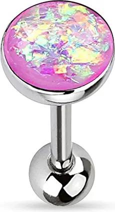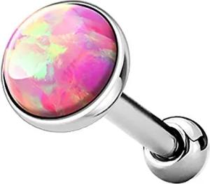 Tragus Piercing Helixpiercing Helix Ohr Cartilage Knorpel Stecker mit flachen Opal Steinen Rund Silber Pink 3mm
