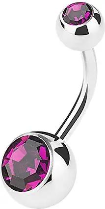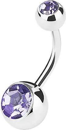 Bauchnabelpiercing Banane Piercing Bauch Stecker Gebogen mit Doppel Multi Kristall Kugel 1,6mm x 11mm x 5mm Lila