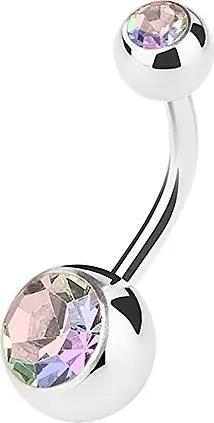 Bauchnabelpiercing Banane Piercing Bauch Stecker Gebogen mit Doppel Multi Kristall Kugel 1,6mm x 12mm x 5mm Rainbow
