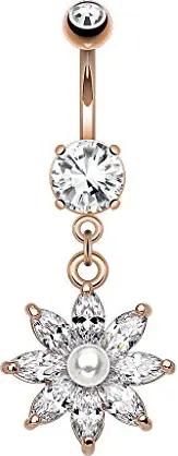 Bauchnabelpiercing Chirurgenstahl Bauch Bauchnabel Piercing Banane Stecker Anhänger mit Blumen Blüte Kristall Perle Rosegold