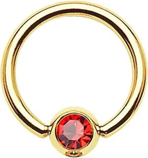 BCR Ring Piercing Brust Nippel Lippe Nase Septum Tragus Ohr Helix Intim Perle mit Zirkonia Strass Kristall Gold Rot 1,2mm x 8mm x 3mm
