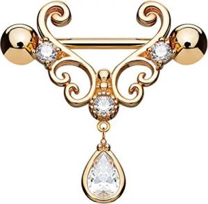 Brustpiercing Intimpiercin Brust Nippel Intim Ring Piercing Schild Tribal Vintage Ornament mit Tropfen Kristall in Roségold