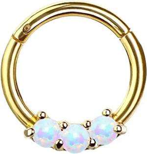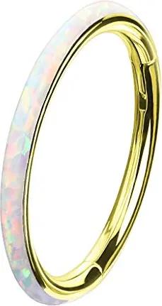 Clicker Scharnier Ring Opale Steine Nasen Piercing Septum Tragus Helix Nase Nasenring Nasenpiercing Ohr Knorpel Segment Klicker Gold Weiß 1,2mm x 8mm