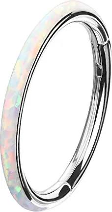 Clicker Scharnier Ring Opale Steine Nasen Piercing Septum Tragus Helix Nase Nasenring Nasenpiercing Ohr Knorpel Segment Klicker Silber Weiß 1,2mm x 10mm