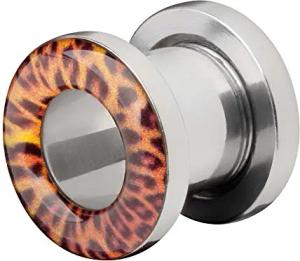 Flesh Tunnel Edelstahl Ohr Plug Schraub Piercing Ohrpiercing Tribal Schraubverschluss Leopard Leo Silber Orange 8mm