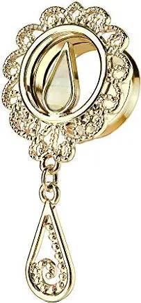 Flesh Tunnel Ohr Piercing Plug Ohrpiercing Ear Edelstahl Vintage mit Perlmutt Tropfen Strass Kristall Anhänger Gold 6mm