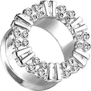 Flesh Tunnel Ohr Piercing Plug Ohrpiercing Ear Edelstahl Vintage mit Strass Kristall Steinen Sonne Silber 16mm