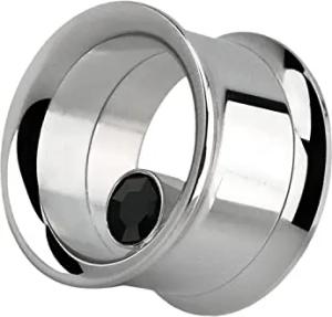 Flesh Tunnel Ohr Plug Piercing Chirurgenstahl 316L Double Flared mit runden Kristall Ohrpiercing Creole Silber 10mm Schwarz