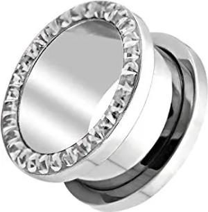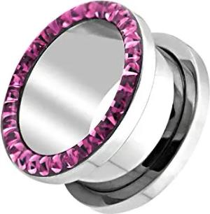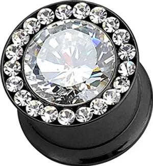Ohr Plug Flesh Tunnel Piercing Ohrpiercing Edelstahl Schwarz Multi Kristalle 6mm