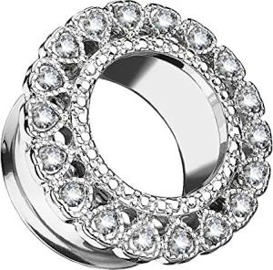 Flesh Tunnel Ohr Plug Piercing Ohrpiercing Vintage Tribal Ethno Boho mit Herz Strass Kristallen 16mm Silber