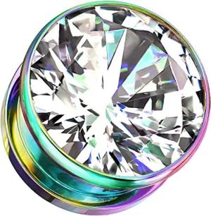 Ohr Plug Edelstahl Flesh Tunnel Piercing Ohrpiercing Schraub Schraubverschluß mit großen klaren Kristall Stein 3mm Rainbow Clear