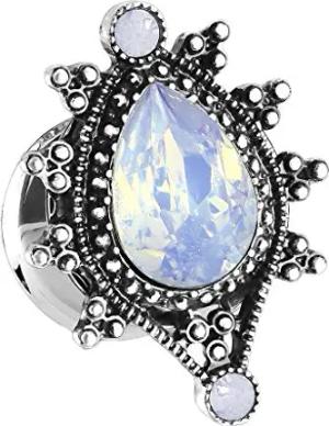 Ohr Plug Flesh Tunnel Piercing Ohrpiercing Edelstahl Antik Vintage Tribal Ornament Opal Träne Oval Tropfen Silber 10mm