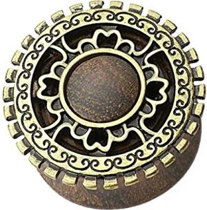 Ohr Plug Flesh Tunnel Piercing Ohrpiercing Holz Tribal Aztek Altgold 14mm