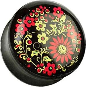 Ohr Plug Flesh Tunnel Piercing Ohrpiercing Organic Ebenholz Double Flared Blumen Muster Schwarz 6mm
