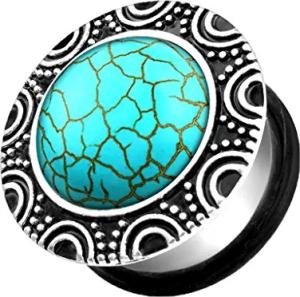 Ohr Plug Flesh Tunnel Piercing Ohrpiercing Single Flared Tribal Türkis Stein Inlay 12mm