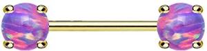 Piercing Brustwarzenpiercing Intimpiercing Hantel Barbell Brust Intim Nippel mit Opal Perlen Kugeln 1,6mm x 12mm x 5mm Gold Lila