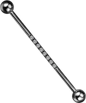 Piercing Hantel Barbell Industrial Ohr Cartilage Helix Tragus Intim Brust Stab Knorpel Langhantel mit Glitzer Kristallen Schwarz Clear
