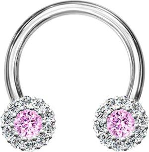 Piercing Hufeisen Horseshoe Kristall Glitzer Blüten Septum Tragus Helix Ohr Nase Lippe Nasenpiercing Ring Silber Rosa