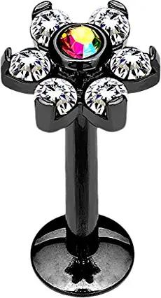 Piercing Stab Stecker Blüte mit Strass Kristall Lippe Ohr Intim Nase Lippenpiercing Tragus Ohrpiercing Helix Zungen Labret 8mm Schwarz