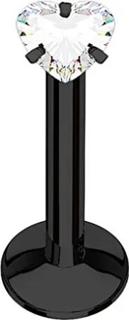 Piercing Stab Stecker für Lippenpiercing Lippe Monroe Labret Lippen Ohr Tragus Helix Stud Cartilage mit Kristall Strass Herz Schwarz 6mm