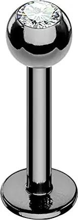 Piercing Stab Stecker Piercing Lippe Monroe Labret Ohr Tragus Helix Kugel Innengewinde Schwarz mit Kristall 1,2mm x 8mm x 3mm
