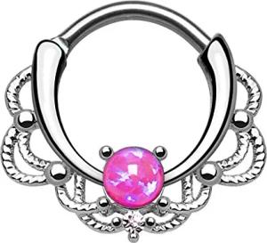 Piercing Universal Clicker Schild Ring Septum Nasenpiercing Lippenpiercing Tragus Helix Ohr mit Opal Silber Pink