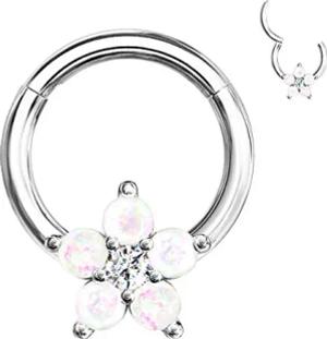 Segment Clicker Scharnier Ring Piercing Blume mit Glitzer Opal Stein Septum Tragus Helix Nase Lippe Nasenring Nasenpiercing Ohr Knorpel Silber