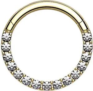 Segment Clicker Scharnier Ring Piercing mit Glitzer Kristall Septum Tragus Helix Nase Lippe Nasenring Ohr Knorpel Gold 1,2mm x 8mm