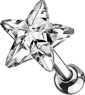 Tragus Helix Ohr Cartilage Knorpel Ear Piercing 316 L Chirurgenstahl Stecker Stud mit Kristall Strass Stern Silber Clear