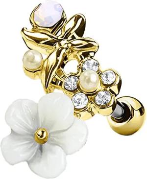 Tragus Helix Ohr Cartilage Knorpel Piercing 316 L Chirurgenstahl Stecker mit Hawaii Blüte Gold
