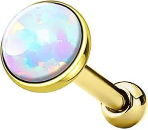Tragus Piercing Helixpiercing Helix Ohr Cartilage Knorpel Stecker mit flachen Opal Steinen Rund Gold Weiß 3mm