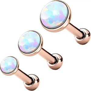 Tragus Piercing Helixpiercing Helix Ohr Cartilage Knorpel Stecker mit flachen Opal Steinen Rund Rosegold Weiß Set