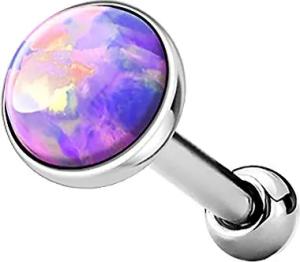 Tragus Piercing Helixpiercing Helix Ohr Cartilage Knorpel Stecker mit flachen Opal Steinen Rund Silber Lila 3mm